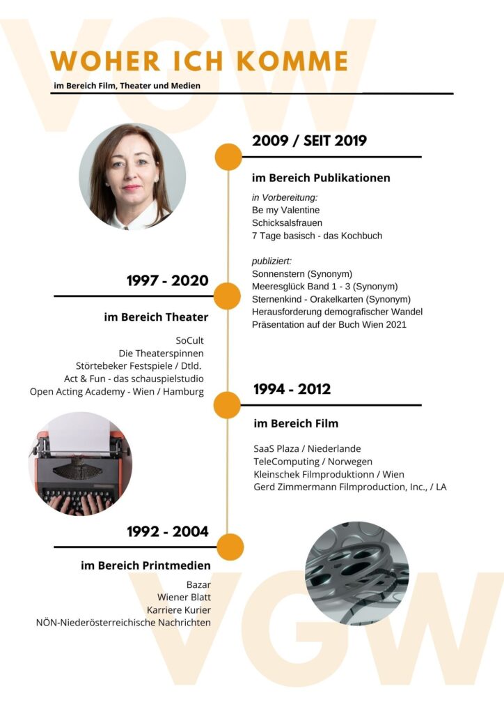 Mein Name ist Verena Grünwald und hier finden Sie alle Informationen für meinen Werdegang im Bereich (Werbe)Film, Theater und Medien. Meine kreative Seite hat mich mein ganzes Leben lang begleitet und Aufmerksamkeit gefordert. In Kombination mit dem Bereich Projektmanagement und Marketing habe ich ihr auch oft nachgegeben. So hat es mich neben meinen Wirtschafts- und Consulting-Tätigkeiten auch in die Branchen Film, Theater und Medien geführt. In den letzten Jahren wurde dann das Schreiben an sich ein immer wichtigerer Teil meines Lebens, der heute ein fixes, zweites – und sehr geliebtes – Standbein einnimmt.