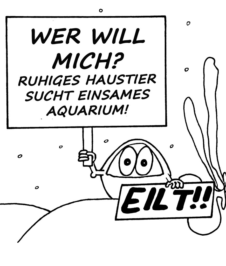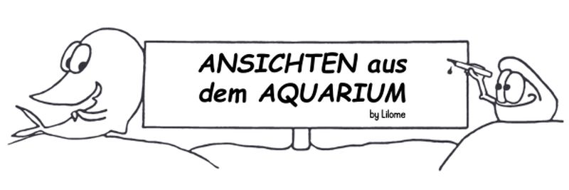 Die Serie „Ansichten aus dem Aquarium“, in Vierer-Panels in Schwarz-Weiß im Original in Tusche gezeichnet, und danach per Photoshop bearbeitet, zeigt das Alltagsleben einer Muschel und eines Fisches in einem Wohnzimmeraquarium, welche nicht nur das Leben mit all den kleinen Herausforderungen und Freuden miteinander meistern müssen, sondern nebenbei auch gleich mit der Liebe, dem Leben, der Freundschaft und den kleinen „menschlichen“ Schwächen aufräumen.