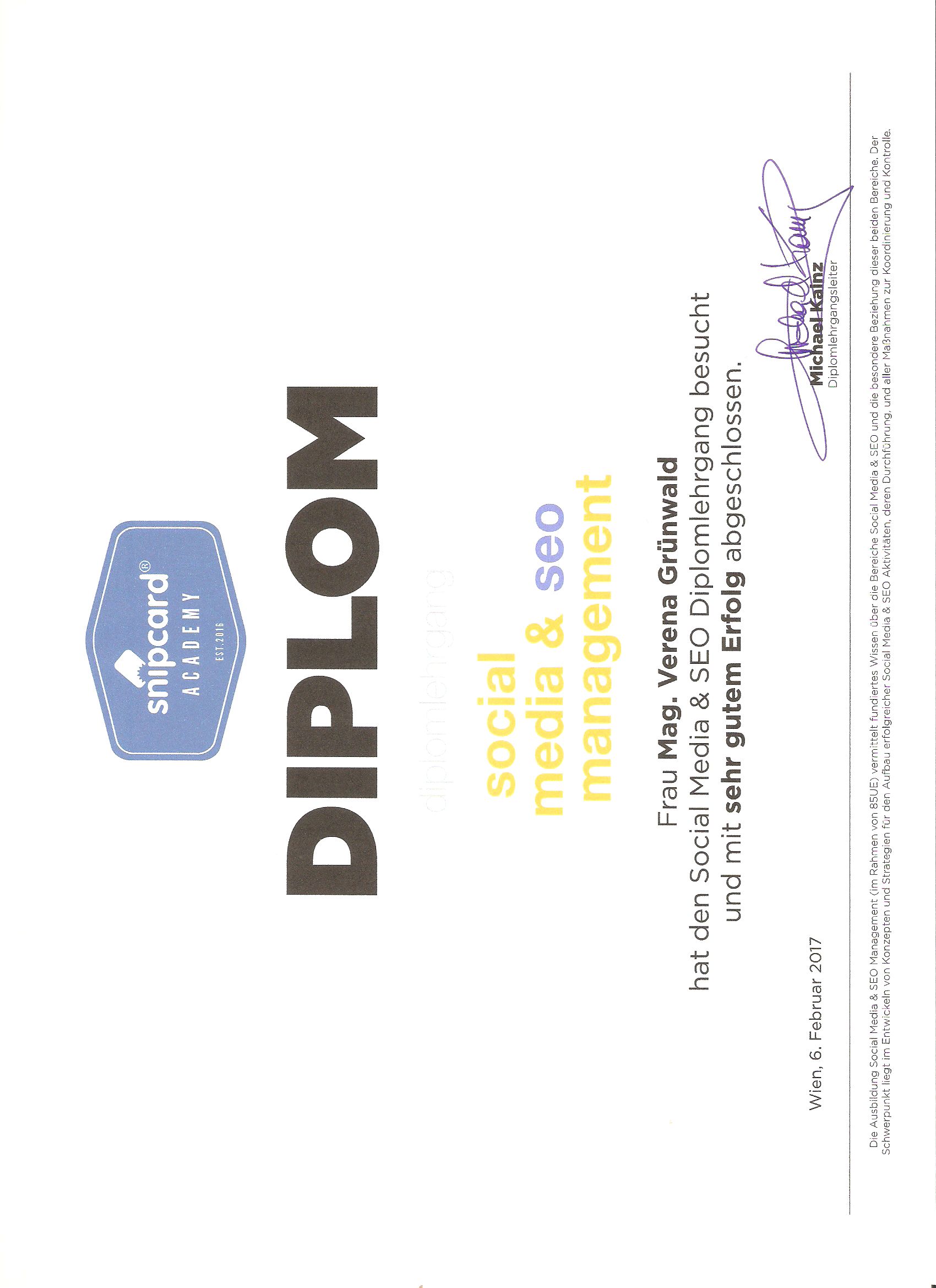 Diplom zertifizierter Social Media- und SEO-Manager